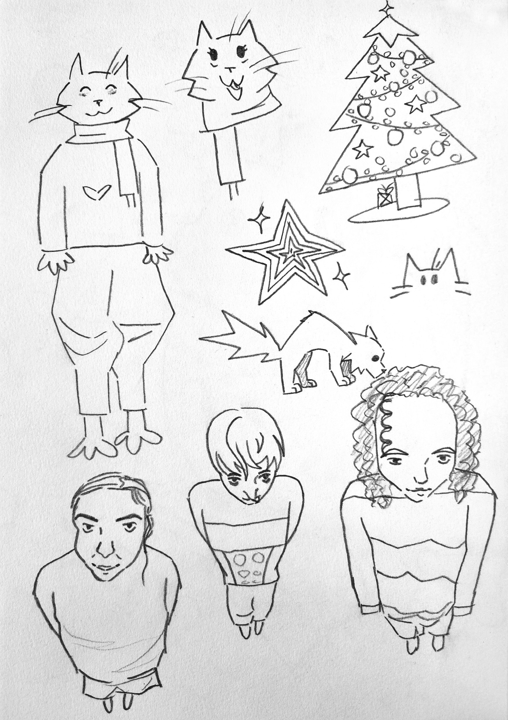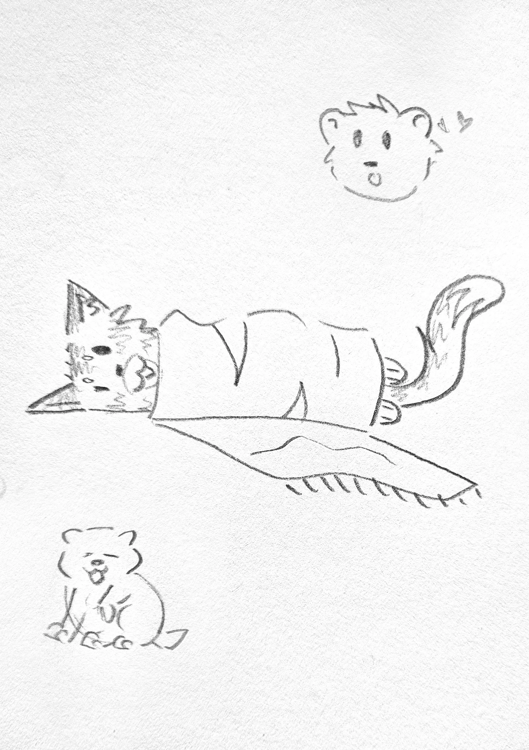 This project is the most intricate piece I’ve ever made, and took over 47 hours to complete. This was both the first time I made a perspective background, and the first time adding this many characters in one piece. I made a plan before I started, sketching out what rooms I wanted and where I wanted the furniture, windows etc. Even just getting the perspective right in these two rooms took me HOURS, and don’t even get me started on that couch.. I changed the perspective on it more than 3 times and used multiple reference pictures but it never looked right. Eventually I made some guidelines with a vanishing point, and after that it finally looked okay. Then I sketched out all the cats and put down the fur colors, adjusting them so they wouldn’t clash. Messing around with the colors was probably my favorite part of this. After that it was just line-art, coloring and detailing. The coloring definitely took me the longest, I went from cat to cat, and messing around with layer limit on procreate was awful. This piece was definitely one of the most challenging art projects I’ve ever finished, and I learnt so much from it. <3