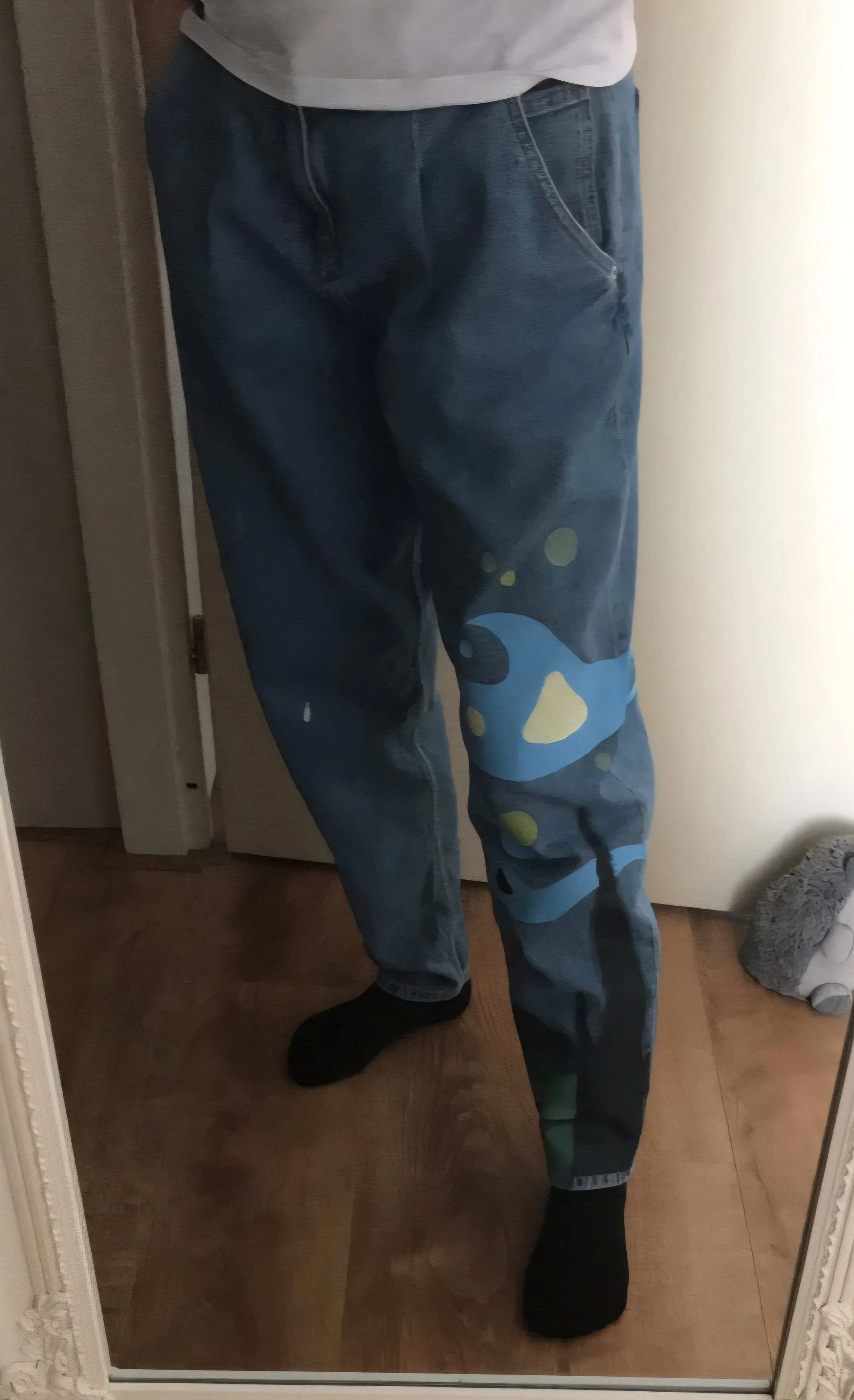 These pants were a project where I tried to incorporate the painting of a famous artist into a medium I have never tried before, that medium being painting on fabric. It was an absolute struggle, and after I’d worn it a couple of times the paint started breaking down so it didn’t quite latch onto the denim but overall I’m really happy with how it turned out, style wise.