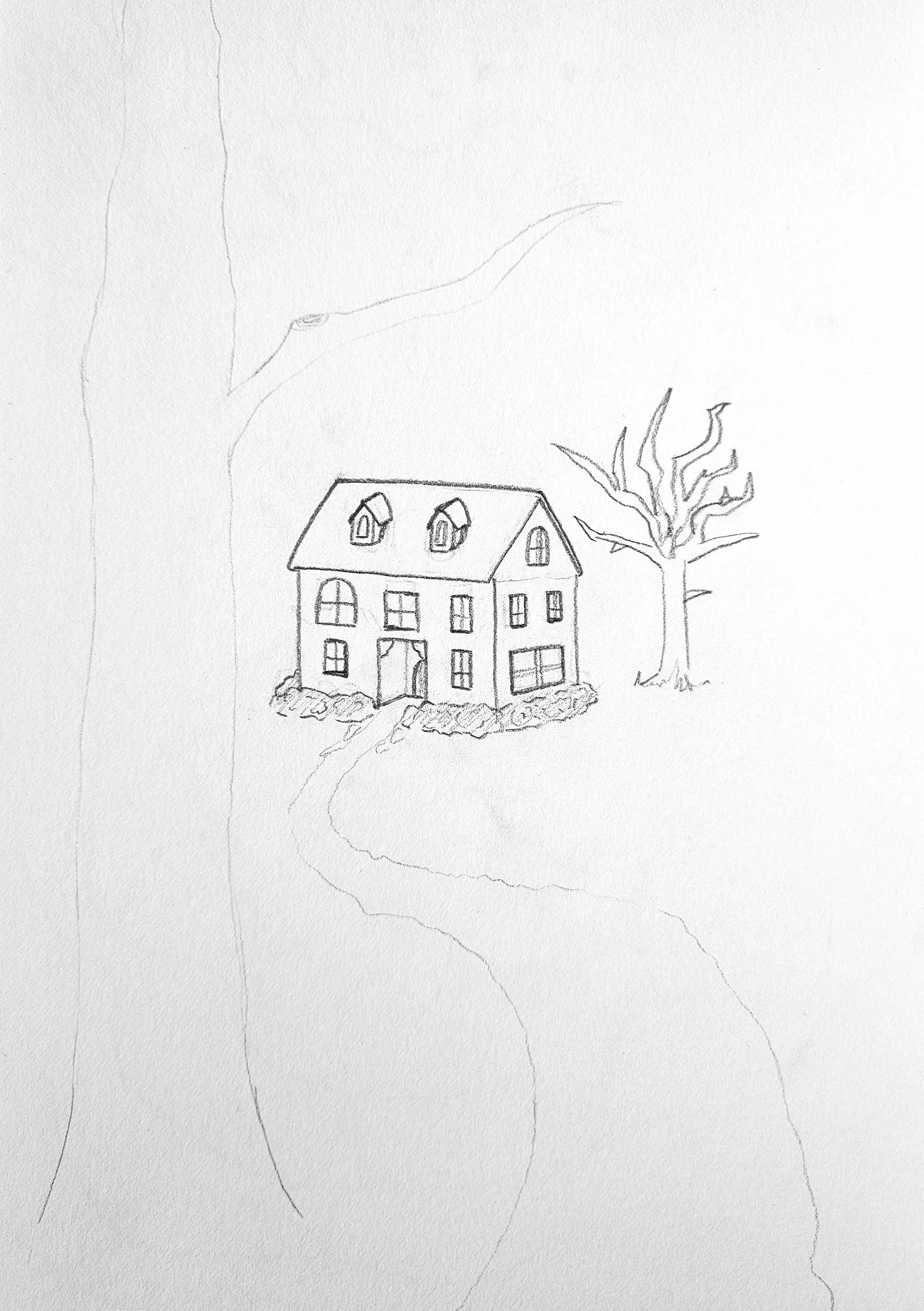 This painting was a class project to make a piece that showcases who you are. I therefore decided to paint, even though I hadn’t in years, and go back to my roots. The sketch was done really quick since I’ve made these sorts of paintings before. For the sky it took long to figure out how to get it to look natural, since the paint (acrylic) was so thick. I ended up mixing 6 different colors and blending them by using a small brush and layering the colors until it looked smooth.