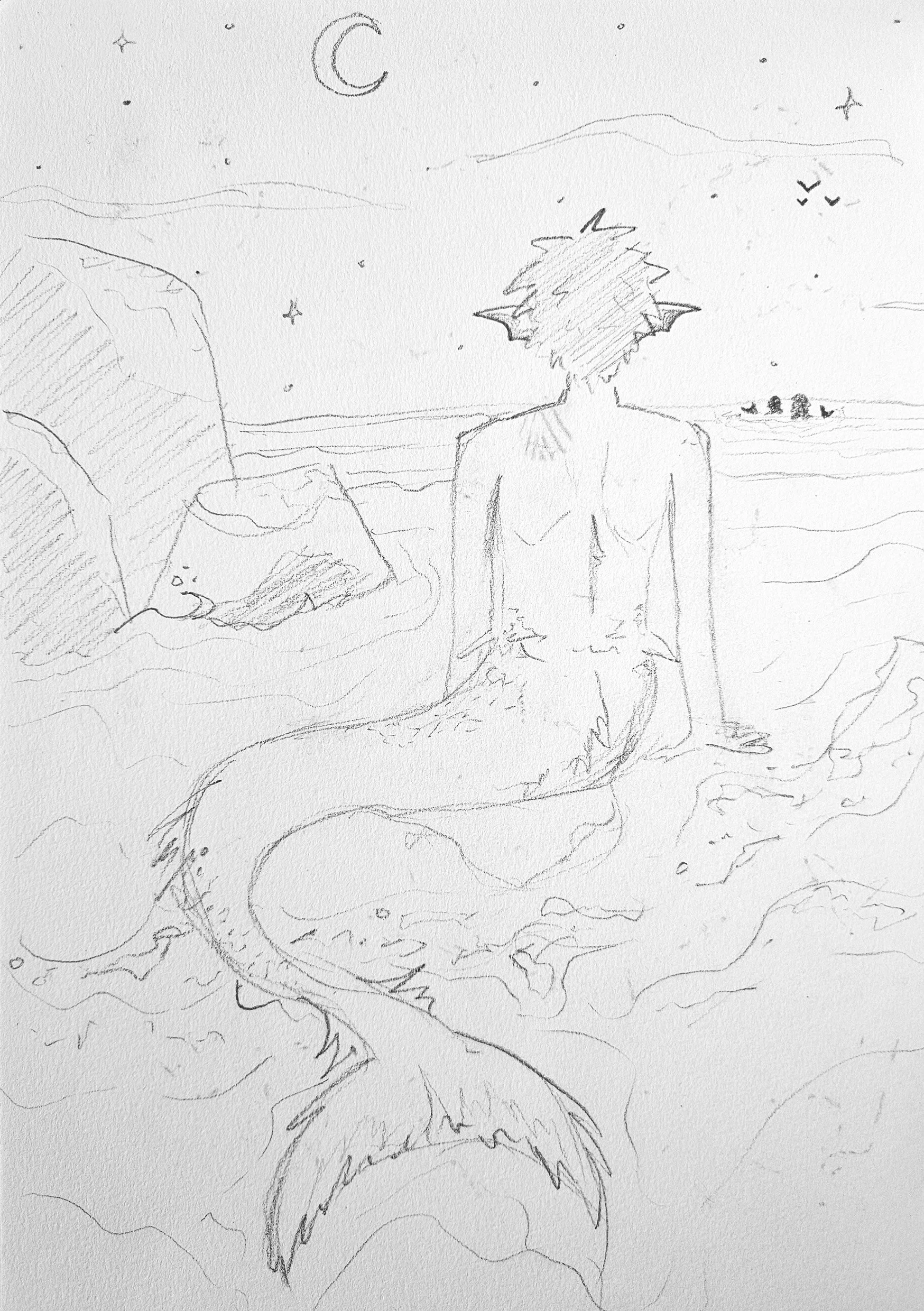 For this underwater merman piece I recreated a project from a year before, since I was very unhappy with the result. I changed up the pose so it would show off the tail colors better, and tried to go for a more floaty pose this time, instead of active swimming.